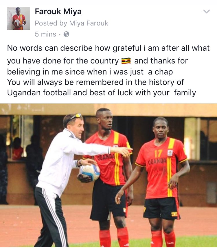 Mchezaji Farouk Miya ambaye ametumia mtandao wa Twitter  kuonesha masikitiko yake kuhusu kuondoka kwa  Micho kutokana na mchanngo wake kwake na nchi, pia amemtakia kila la kheri aendako.